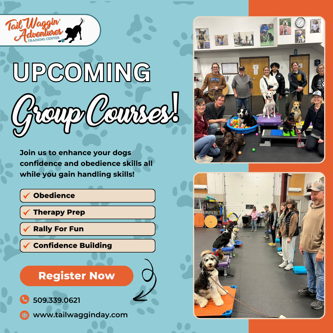Our training center offers a wide variety of classes at affordable prices! From all levels of obedience, fun agility/rally, to single sessions, there’s a class for everyone. Keep an eye out on our social media and here on our calendar to see what we have to offer. Not seeing a class being offered? We’ll add you to our waitlist and reach out to you when we add it to our schedule. Call us today to register & be sure to fill out the forms below!